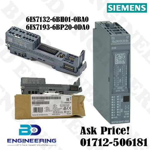 Simatic 6ES7132-6BH01-0BA0 Digital Output-Module ET-200SP SIEMENS. Simatic et 200sp digital output module DQ 16x 24v dc/0.5a standard, source output (PNP, p-switch) fits bu-type a0. And color code cc00, extra value output module diagnostics for short-circuit and ground wire break supply voltage