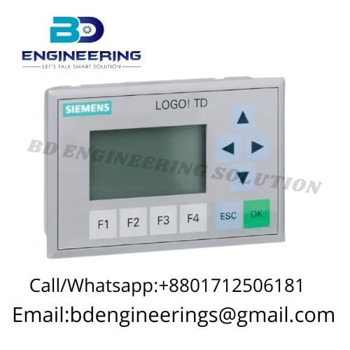Siemens Logo 6ED1055-4MH00-0BA0 Text Display is now available in BD Engineering Stock. Siemens PLC, Siemens HMI.The Siemens LOGO! TD (Text Display) model 6ED1055-4MH00-0BA0 is an operator panel designed to be used with the LOGO! logic modules. Here are the detailed specifications and features of this text display: