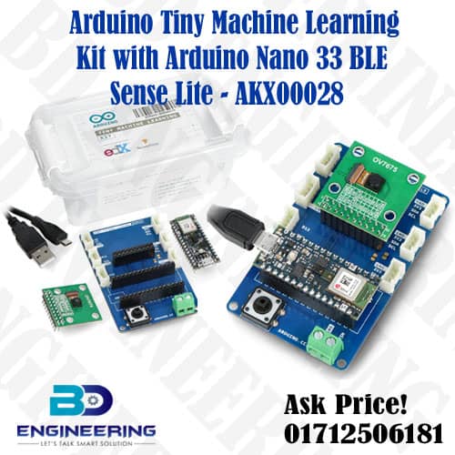 The Arduino Tiny Machine Learning Kit AKX00028 is an official Arduino product designed. Which is the practice of running machine learning models on low-power, resource-constrained microcontrollers. This kit is particularly well-suited for educational purposes and prototyping edge AI applications.