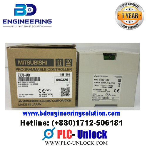FX3U 4DA Converter Mitsubishi. Mitsubishi FX3U Module is 4DA Digital To Analogue, 4 Channel, 16 Bit, -10 V To +10 V, 4-20ma DC. It Compatible with programmable logic controller (PLC) FX3S/ FX3G/ FX3GC/ FX3U / FX3UC Series. Explicates the FX3UC Series PLC is MELSEC iQ-F FX5U designations for Input and output wiring with installation and maintenance.