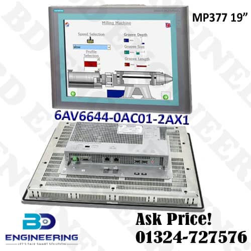 The Siemens HMI 6AV6644-0AC01-2AX1 best price seller in Bangladesh. Simatic MP377 19inch touch multi panel. SIMATIC MP 377 HMI 6AV6 644 0AC01 2AX1 19″ Touch Multi-Board, Windows CE 5.0 19″ variety TFT show 12 MB. Setup memory is configurable from WinCC adaptable 2007.