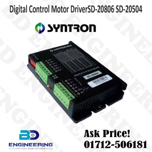 Syntron DSP Digital Control Motor Driver SD-20806 SD-20504. Therefore, by using 32-bit DSP in all digital control modes and an advanced space vector algorithm to control low-vibration and high-speed performance. And also find the idea of adaptive matching and optimizing control approach. Like different types of motor, software update and easily upgrading. Moreover, using a micro-stepping algorithm to build the motor maintains optimal running performance. But, whatever the drive set, it improves the smoothness and noise under a low subdivision. Even if the user can not get it the higher subdivision options because of the limit of the control system. It can also find both very low-speed stability and very high-speed. This reduces the requirements of the control system. It also helps to reduce the overall cost of the system to make the performance better. Syntron DSP Digital Control Motor Driver price in bd.