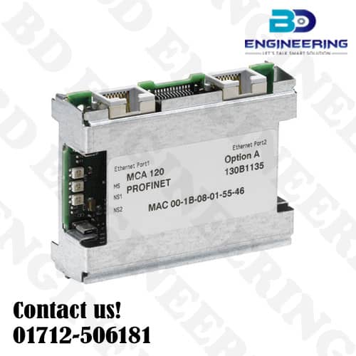 Danfoss PROFINET Option A MCA120 VLT FOR INVERTER VFD available in BD. The MCA120 PROFINET interface with reinforced coating (EC 60721-3-3) operation on PROFINET network with extensive. The DCP support for facile setting Communication parameters via the PLC the parameterize with the MCT10, 2-port version truncated external hardware. Danfoss PROFINET MCA120 130B1235 VLT.