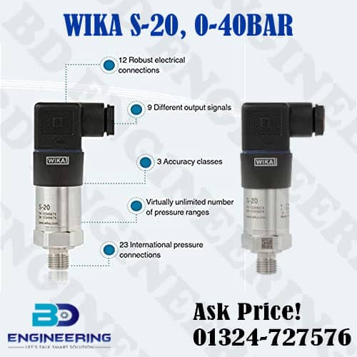 The model S-20 offers ceaseless estimating ranges between 0… 10 psi and 0… 20,000 psi (0 … 0.4 and 0 … 1,600 bar) in all normal design units. Vacuum and compound reaches are like wise accessible. The WIKA S-20 0 40BAR Pressure Transmitter listed pressure ranges are also available in kg/cm2, kPa and MPa. Special measuring ranges between 0 … 10 and 0 … 20,000 psi ( 0.4 -1600 bar) are available on request. Special pressure ranges may have reduced long-term stability and increase temperature errors.