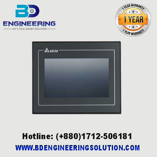The Delta HMI model DOP-107CV is a compact touch screen human-machine interface (HMI) designed for various industrial applications. The HMI is typically housed in a durable enclosure suitable for industrial environments and can be panel-mounted for integration into control panels or cabinets.