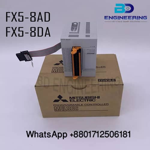 MELSEC iQ-FX5 Sequence Input/Output Unit of FX5-8AD FX5-8DA.The modules offer high quality in a compact, cost effective pack.The Mitsubishi Electric PLC modules. The FX5-8AD and FX5-8DA are analog input and output modules for the Mitsubishi FX5 series PLC (Programmable Logic Controller).