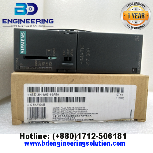 The Siemens S7-300 SIMATIC CPU-314 (model number 6ES7 314-1AG14-0AB0) is a central processing unit (CPU) within the SIMATIC S7-300 series of programmable logic controllers (PLCs). It is designed for use in a wide range of automation applications.