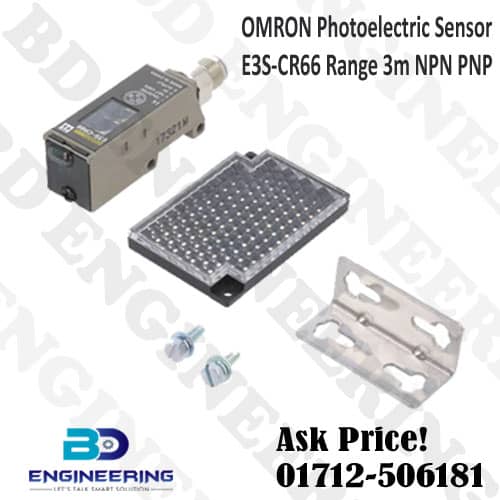 OMRON Photoelectric Sensor E3S-CR66 seller in Bangladesh. Oil is resistant to Water Photoelectric sensors also metal housing is used for high-range sensing. Great resistance against water and oil. Simple application in areas with oil fog. Long-range detecting up to 30 m with Through-bar models. Shock obstruction evaluated at 1,000m/s2. The item setup incorporates metal M12 pre-wired connector models. NPN/PNP selector switch yield. Other sensors, Photoelectric sensors, Hit Sensors, Pressure Sensors, Teamputer sensors, and much more ready stock.