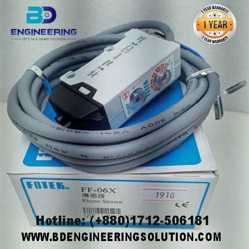 The FOTEK FF-06X/FM-01G eye-mark photo sensor is a type of photoelectric sensor designed for detecting eye-marks or registration marks on moving materials, commonly used in printing, packaging, and labeling applications.