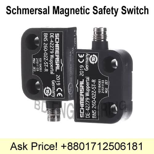 Schmersal sensor is very safe to use. Senor works as good safety switch ON distance places. It has 1-NO and 2-NC contact number. Also a black color thermoplastic compound in it. This safety switch also can conceal mounted. Safety switch actuator is very good to use and also works separately.