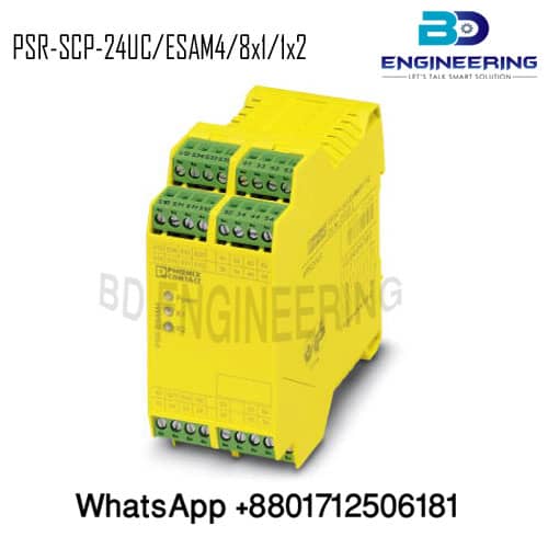 Phoenix Contact Safety relays-2963912 PSR-SCP-24UC/ESAM4/8X1/1X2. The Safety relay for emergency stop and safety door monitoring up to SIL 3 or Feline 4 PL e. According to EN ISO 13849 single or two-channel operation 8 enabling current paths nominal input voltage of 24 V AC/DC plug-in screw terminal blocks.