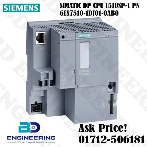 SIMATIC ET-200SP CPU1510SP-1PN 6ES7510-1DJ01-0AB0 SIEMENS. The Simatic PN CPU 1510sp-1PN for et 200sp central processing unit with working memory 100 kb. The program and 750 kb for data 1 interface profinet IRT with 3 port switch 72 ns bit-performance. Simatic memory card necessary with bus adapter necessary for ports 1 and 2