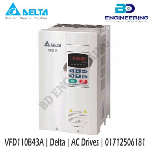 The Delta VFD B Series-VFD110B43A-AC-Drives-Inverter Price in BD. Delta Inverter/VFD 11KW/15HP 460V 3-Phase Official which Model VFD110B43A and,Series VFD-B. Most the popular models of Delta M series VFD in the bd market. The Delta VFD-B Series VFD110B43A is a robust and versatile AC drive (inverter) designed for controlling the speed and torque of three-phase AC induction motors.