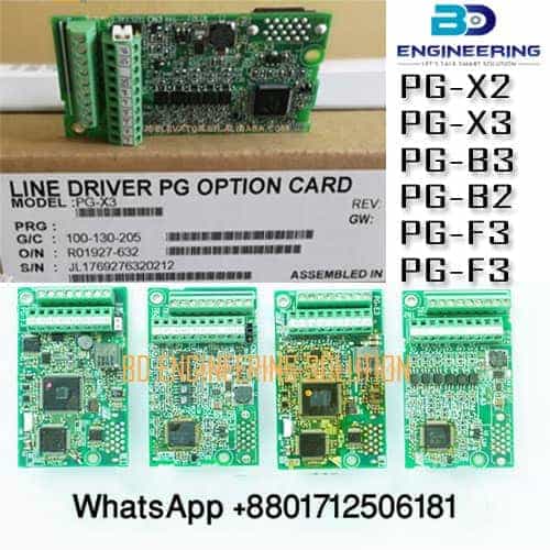 It looks like you’re asking about a PG Card for a Yaskawa B3 X2 B2 E3 F3 X3 inverter or VFD. A PG Card, in this context, likely refers to a Pulse Generator Card used for feedback control in Yaskawa inverters. However, specific details about the PG Card you’re looking for can depend on the model and specifications of your Yaskawa inverter.